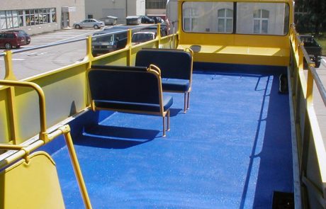 Für einen Doppeldecker-Bus ist ein rutschhemmender Boden, der auch bei feuchter Witterung einen sicheren Stand ermöglicht, von sehr hoher Bedeutung. Zusätzlich sollte er vor Korrosion schützen, abriebfest und verschleißfest sein. Diesen Anforderungen kommt die Bodenbeschichtung von Goliath Trans-Lining einschränkungslos nach.